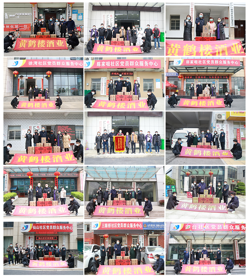 4月1日-3日,漢陽區永豐街黨工委書記易雄才,黨工委副書記、辦事處主任成艷統籌協調并做工作安排,永豐街黨工委副書記余洪寶,永豐街區域發展辦科長王莉帶隊,黃鶴樓酒業黨委書記、董事長許鵬一行慰問武漢市漢陽區永豐街快活嶺社區、徐灣社區、米糧社區、磨山社區、燎原社區、仙山社區等19處社區及集團公司,許鵬代表黃鶴樓酒業為各大社區送去共計40余萬元慰問物資,各社區書記及集團公司董事長接待慰問。