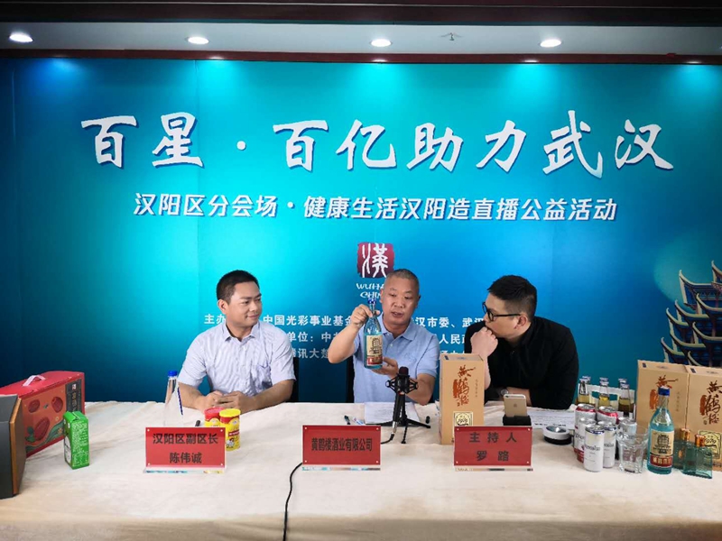 5月10日,“百星·百億助力武漢”直播公益活動開幕,百位明星為武漢產品直播帶貨,全市各區主要負責人客串“網紅主播”。漢陽區委書記、區長徐麗為漢陽區分會場致開幕辭,區人民政府黨組成員、副區長陳偉誠,黃鶴樓酒業黨委委員、總經理助理魏國攜手武漢電視臺主持人羅路走進直播間為大家共敘黃鶴樓酒品牌好故事。