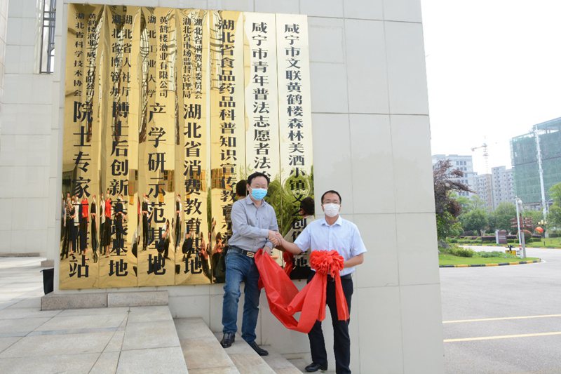 5月22日,咸寧市文聯黃鶴樓森林美酒小鎮文藝創作基地揭牌儀式在黃鶴樓森林美酒小鎮召開,咸寧市文聯黨組書記李專、主席劉智毅,黃鶴樓酒業咸寧分廠廠長李良,技術質量中心總監時宏偉,酒體設計總工程師李久洪出席儀式。
