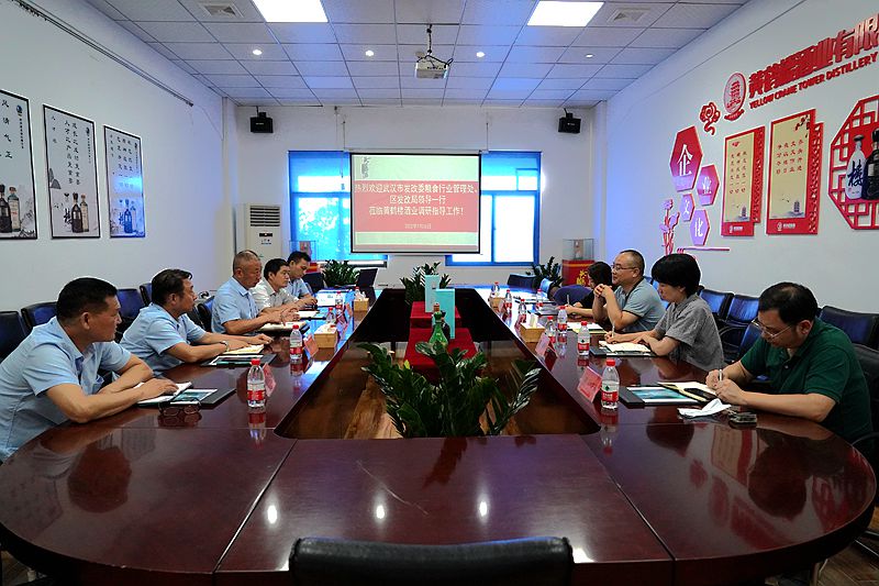 7月26日,武漢市發(fā)改委糧食行業(yè)管理處處長(zhǎng)王必生,副處長(zhǎng)孫慧婉、彭玫一行調(diào)研黃鶴樓酒業(yè),漢陽(yáng)區(qū)發(fā)改局副局長(zhǎng)葉方斌陪同調(diào)研,公司黨委委員、副總經(jīng)理魏國(guó)出席活動(dòng)。