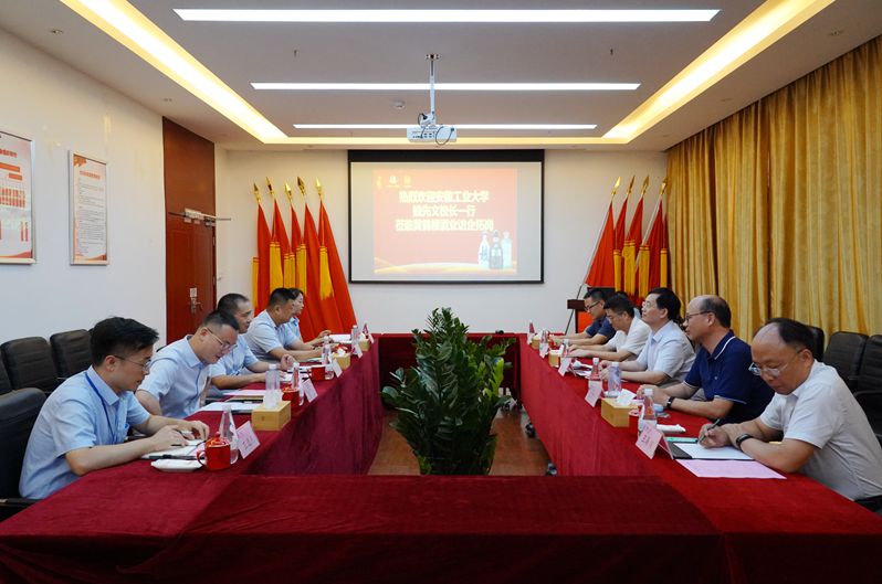 8月9日,安徽工業大學黨委副書記、校長魏先文,科研處處長王孝義、校友處處長甘亞,冶金工程學院院長王海川一行到黃鶴樓酒業參觀交流,公司黨委副書記、總經理朱向紅陪同參觀。