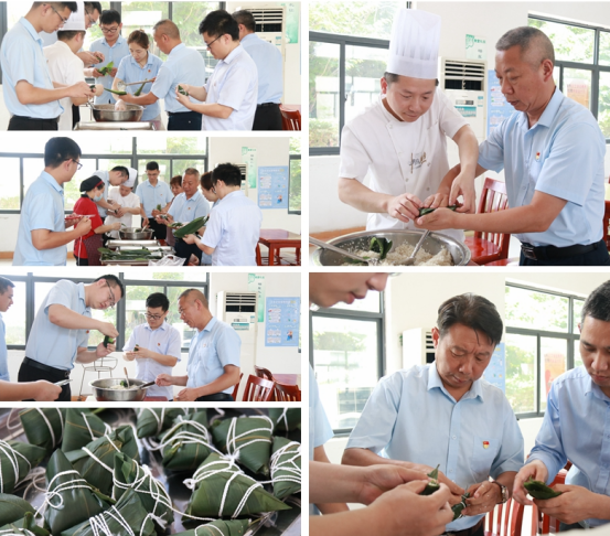 “把粽葉彎曲成漏斗,舀一些糯米放入,再用粽葉壓住開口,最后用繩子緊緊綁起來。”活動現(xiàn)場,行政黨支部黨員、發(fā)展對象、積極分子在食堂師傅的講解指導(dǎo)下,紛紛動起手來包粽子,感受端午文化底蘊、堅定民族文化自信。