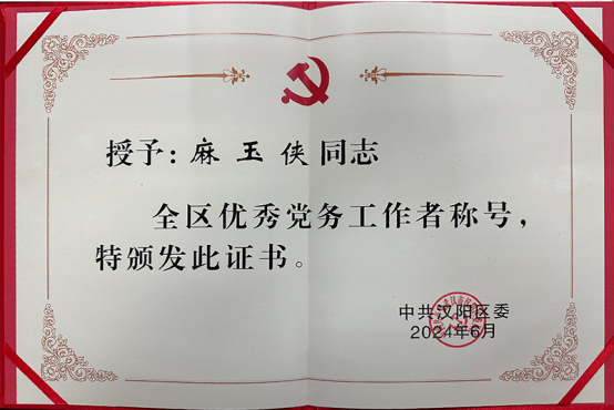 麻玉俠獲“漢陽區優秀黨務工作者”稱號