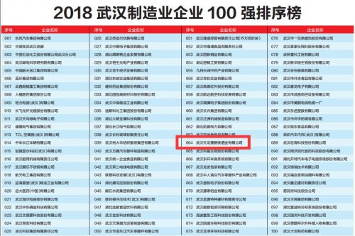 2018武漢制造業(yè)企業(yè)100強(qiáng)榜單