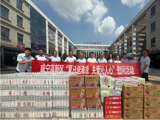 8月6日,咸寧高新區黨工委委員、紀監工委書記佘中宏一行到黃鶴樓酒業咸寧子公司開展“夏日送清涼 關愛沁人心”主題慰問活動,公司酒體設計總工程師李久洪、釀造管理中心總監助理史健陪同慰問。