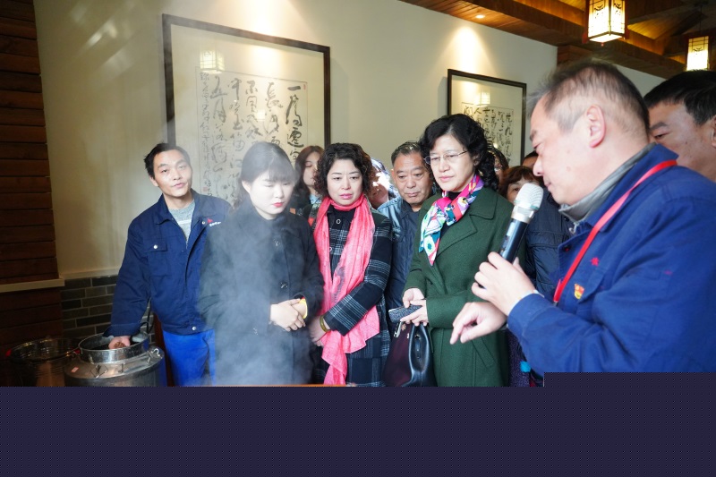 12月12日,漢陽區工商聯主席張燕婷帶領區非公企業家一行到黃鶴樓酒業參觀交流,公司工會主席、黨工團中心副總監張瑞接待來訪。